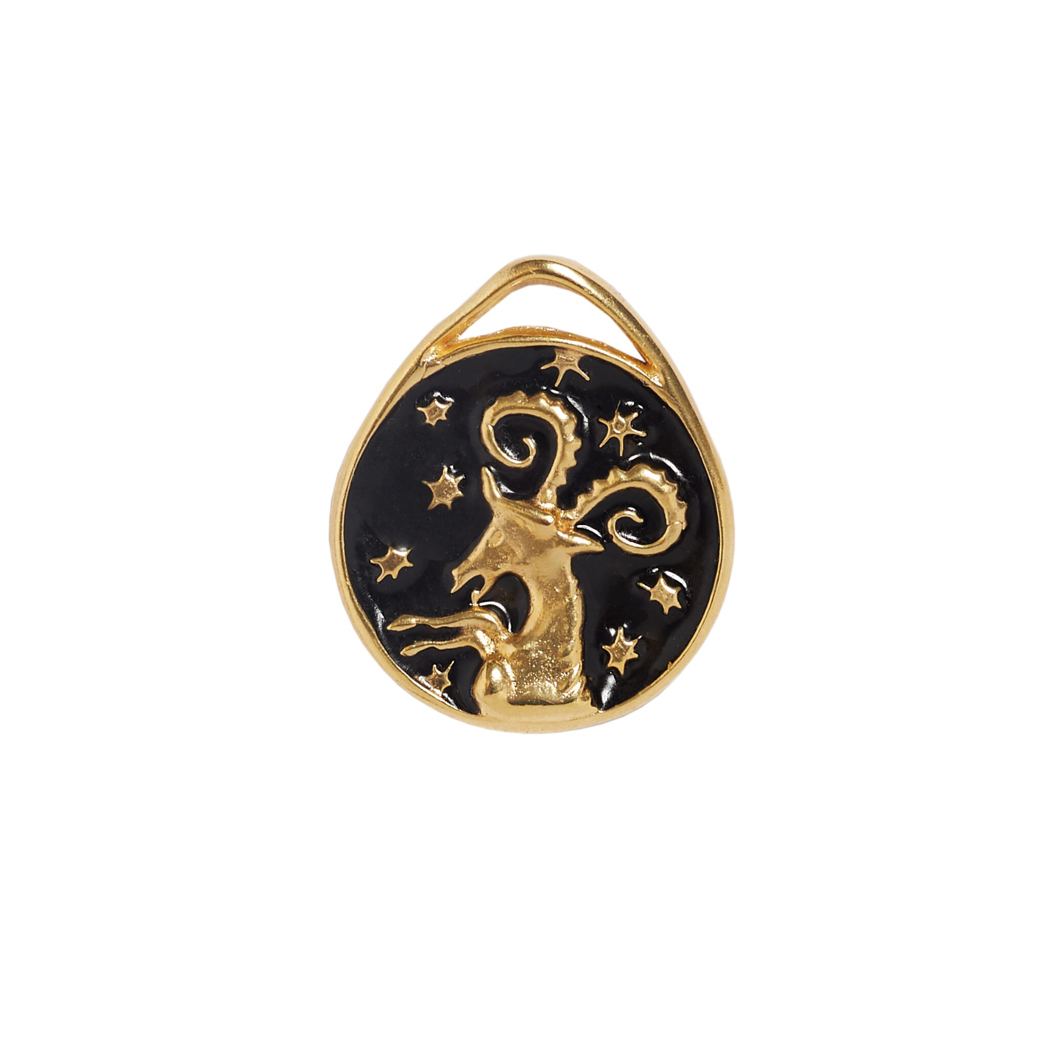 – Bronce enchapado en oro 24k / esmalte negro / 5.2 gr / 20mm de diametro